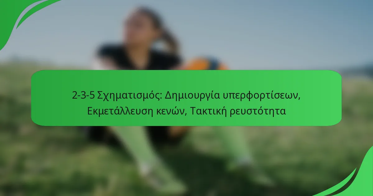 Η δημιουργία υπεραριθμιών στη διάταξη 2-3-5 περιλαμβάνει τη στρατηγική τοποθέτηση των παικτών για να υπερτερούν αριθμητικά στους αντιπάλους σε συγκεκριμένες περιοχές του γηπέδου. Αυτή η τακτική ενισχύει τις επιθετικές ικανότητες εκμεταλλευόμενη τα κενά στην άμυνα και δημιουργώντας ευκαιρίες για γκολ.