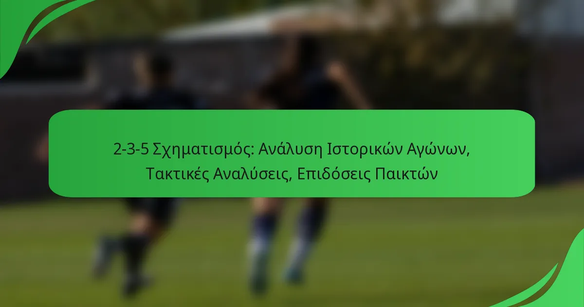 2-3-5 Σχηματισμός: Ανάλυση Ιστορικών Αγώνων, Τακτικές Αναλύσεις, Επιδόσεις Παικτών