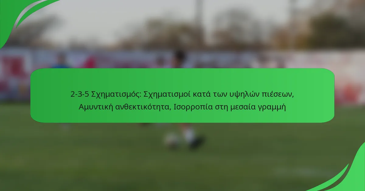Read More2-3-5 Σχηματισμός: Σχηματισμοί κατά των υψηλών πιέσεων, Αμυντική ανθεκτικότητα, Ισορροπία στη μεσαία γραμμή
