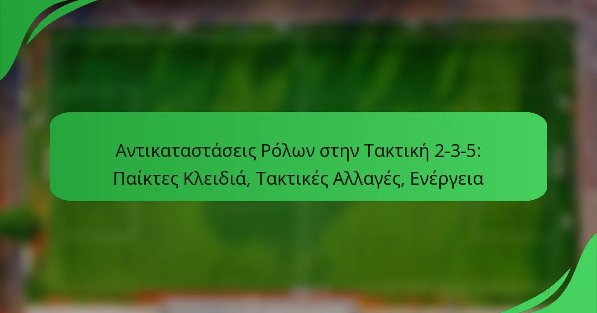 Read MoreΑντικατάσταση Ρόλων στη Σχηματισμένη 2-3-5: Παίκτες Επιρροής, Τακτικές Αλλαγές, Ενέργεια